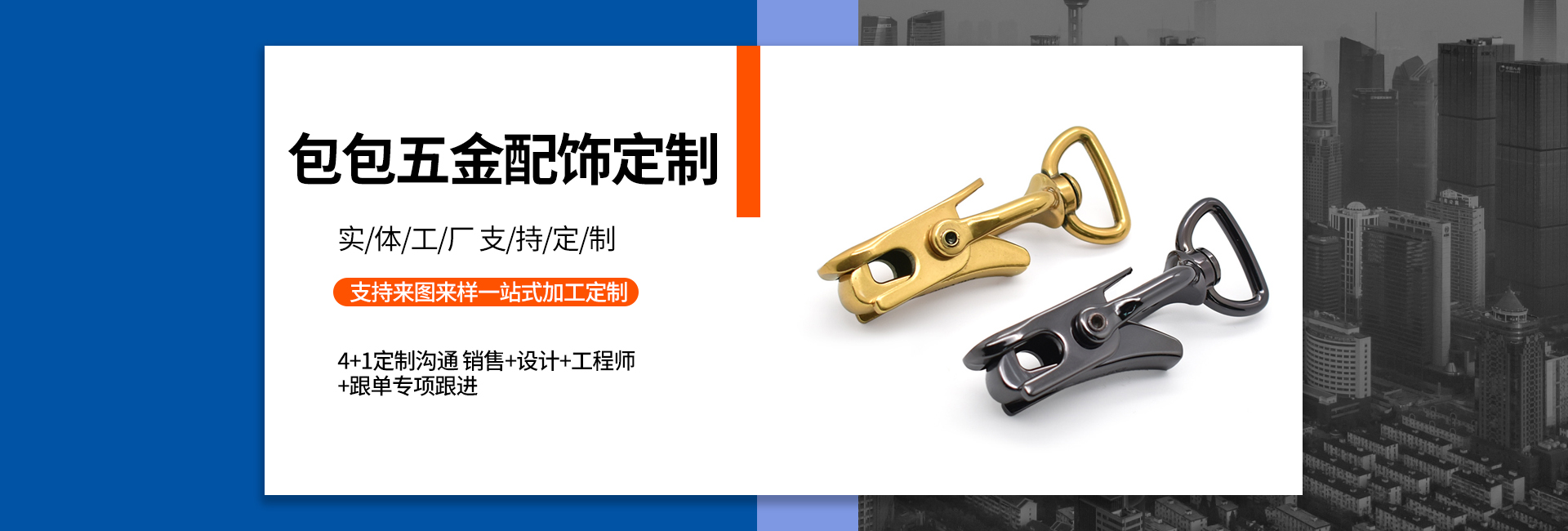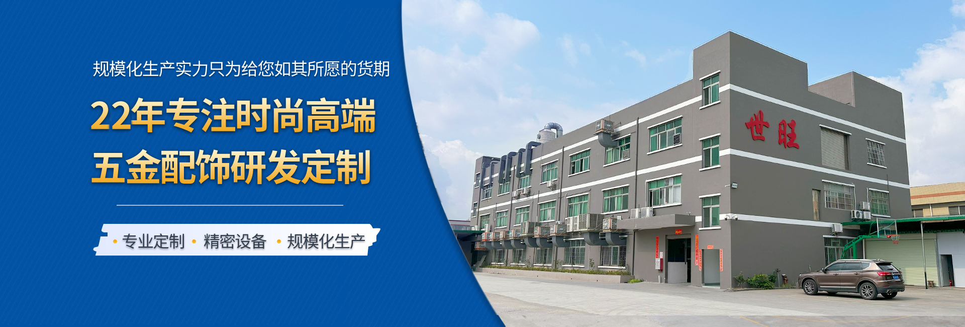 世旺五金是一家專業(yè)從事手袋箱包五金配飾定制生產(chǎn)的工廠,始創(chuàng)于2004年,至今19年五金配飾定制經(jīng)驗,是集研發(fā)、設計、制造、電鍍、銷售于一身的企業(yè),擁有14000多平的生產(chǎn)基地,全自動化生產(chǎn)能力,自有模具制造車間和電鍍工廠,日產(chǎn)能20多萬件,還有強大的技術(shù)團隊和高效的銷售網(wǎng)絡。我們以市場需求為導向,不斷探索和創(chuàng)新,在產(chǎn)品品質(zhì)和性能上達到領先水平。 我們的產(chǎn)品包括各類五金制品,如高端皮具手袋、消費電子、禮品/工藝品包裝、寵物穿戴、汽車裝飾等領域五金配飾,應用廣泛,覆蓋行業(yè)多。 以客戶需求為中心,為客戶提供全方位的一站式服務,包括售前咨詢,生產(chǎn)跟進,售后服務等等。提供保姆式顧問式服務,與品牌商、手袋廠等共同打造好產(chǎn)品,好IP。